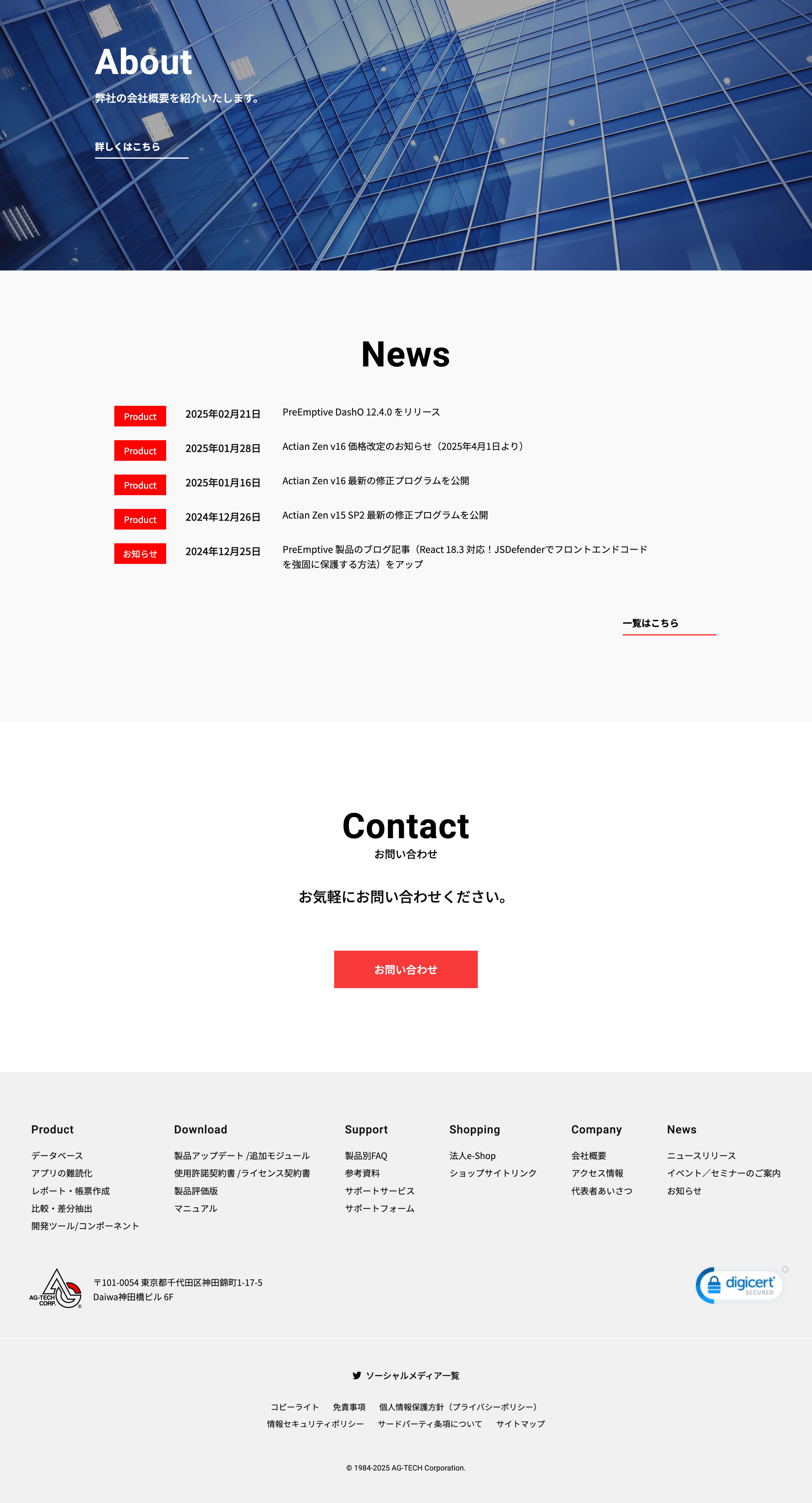 海外製ソフトウェアの輸入・販売、サポート会社 AG Techのコーポレートサイト。リニューアル前からソフトウェアごとの商品説明ページなど500ページ以上あり、これを構造的に整理したうえで可読性のあるデザインを作成。効率的に編集可能なWordPress化をする必要がありました。この難題も、デザイン、コーディング両方の知識がある弊社により、デザイン性の高いサイトを短納期で納品すことができました。