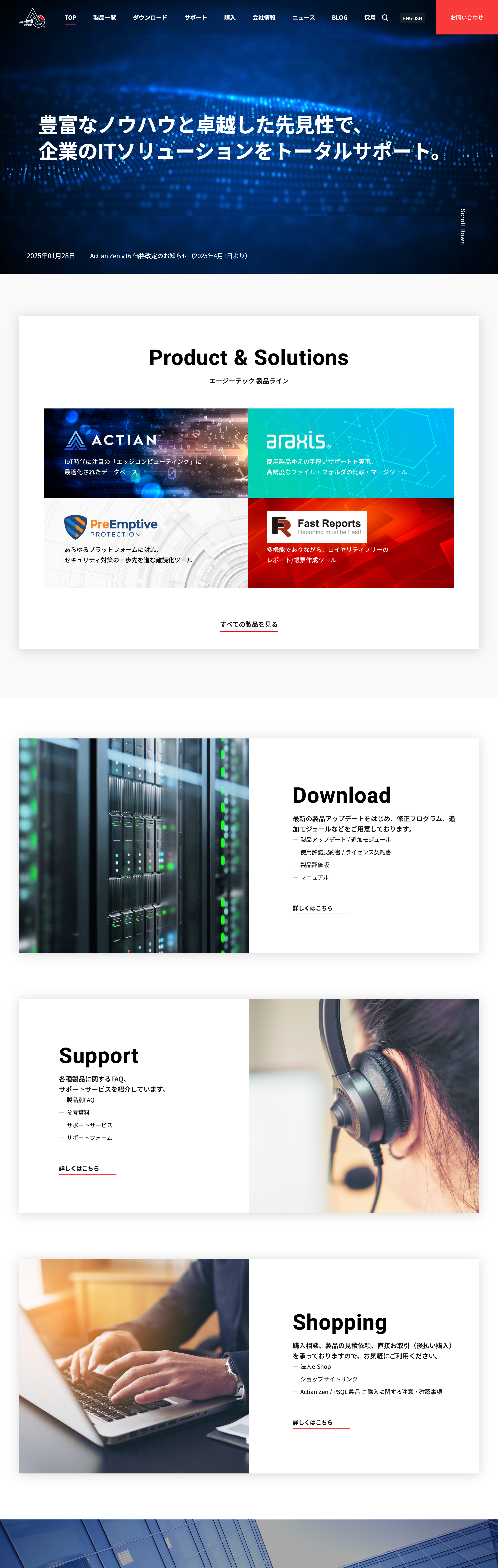 海外製ソフトウェアの輸入・販売、サポート会社 AG Techのコーポレートサイト。リニューアル前からソフトウェアごとの商品説明ページなど500ページ以上あり、これを構造的に整理したうえで可読性のあるデザインを作成。効率的に編集可能なWordPress化をする必要がありました。この難題も、デザイン、コーディング両方の知識がある弊社により、デザイン性の高いサイトを短納期で納品すことができました。