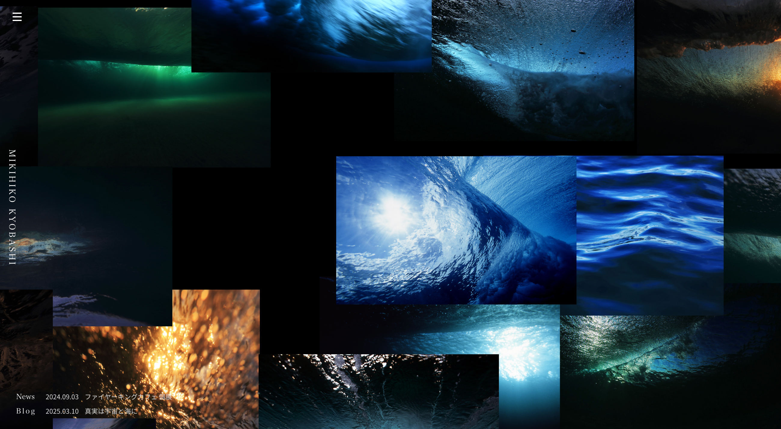 写真家、京橋幹彦氏のサイト、写真の美しさをいかしたギャラリー性の高いサイトにデザインしました。